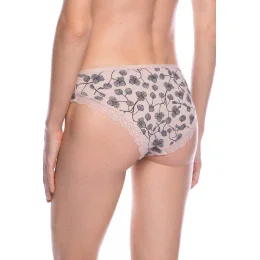 Dámské bavlněné kalhotky. V balení po 2 kusech, jeden hladký, druhý s potiskem, vzadu zakončený jemnou krajkou.
