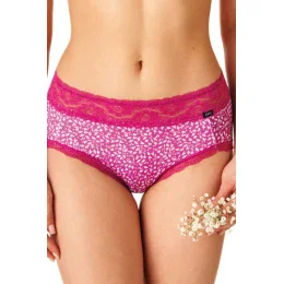 Dámske bavlnené nohavičky, ktoré sú ozdobené čipkou.