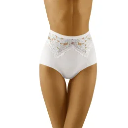 Veľmi ženské nohavičky s vyšším strihom, doplnené krásnymi čipkovanými vsadkami. Vpredu so zvislými rozparkami, tvarujúcimi brucho a boky. Vzadu s jemným efektom rozparku, jemne nadvihujúcim zadoček. Vysoká kvalita. Zloženie: 58 % polyamid, 42 % elastan.