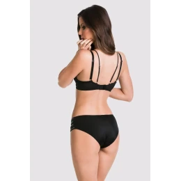 Klasické kalhotky z černého mikrovlákna, boky z tylu zdobené stříbrnými proužky.
