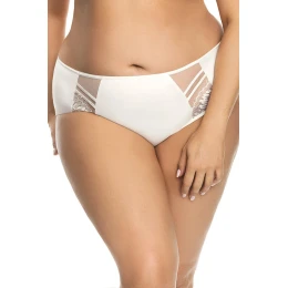 Figi damskie o wyższym stanie.Zabudowany fason zasłaniający prawie całe pośladki.Wykonane z tiulu elastycznego, tiulu stabilnego oraz stabilnej koronki z rzęskami.Skład:90% poliamid, 7%elastan,3% poliester.