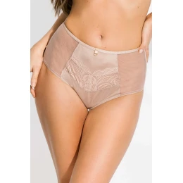 Vysoké bikiny klasického strihu, sieťovaný predný diel zdobený čipkou, elastický stred, stabilné boky, zadný diel z tylu, spodný diel zakončený čipkou.