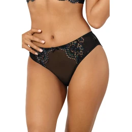 Očarujúce nohavičky v čiernej farbe sú dokonalým doplnkom modelu V-10381. Pohodlné a ľahké, obopínajú vaše telo jemným tylom, v bočných zónach vsadkami z najkvalitnejšej čipky, ktorá sa trbliece v zlatom a modrom odtieni . Pohodlný a široký klin zabezpečí komfort pri nosení.