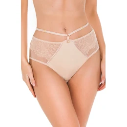 Klasické nohavičky z béžového tylu, na bokoch je béžová sieťovina, na ktorej je našitá čipka.