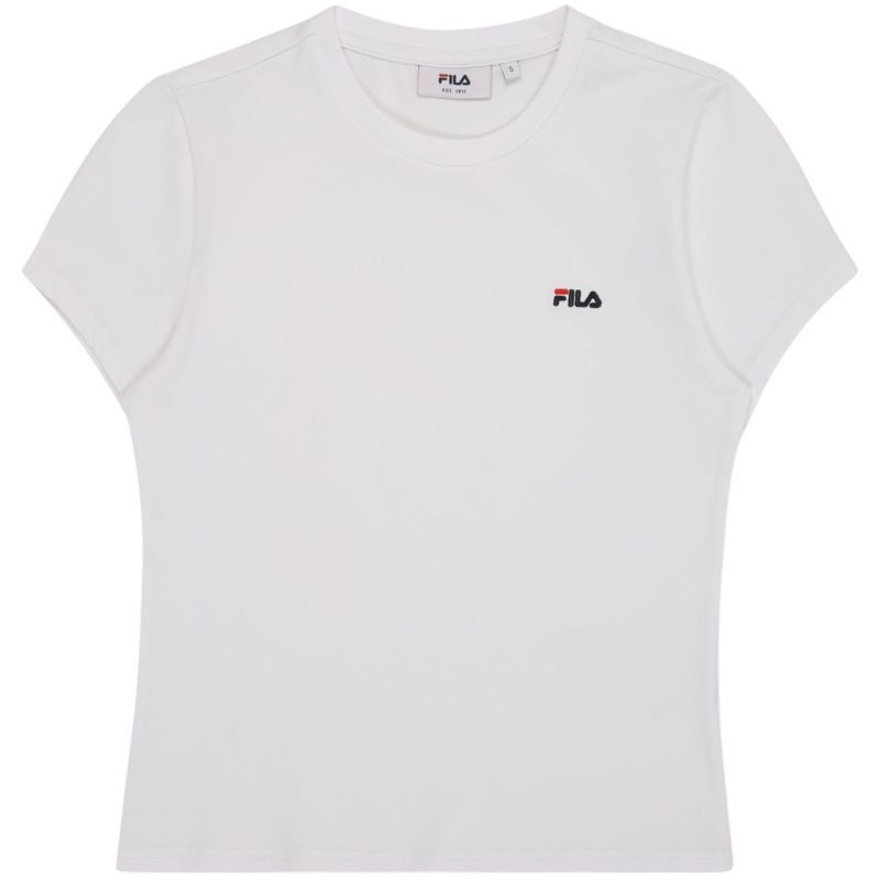 Koszulka damska Fila Trivero biała FAW1205 10001 T-shirt damski Fila sprawdzi się na co dzień. Niewielkie, wyszywane logo. Dopasowany, taliowany krój. Miękki materiał. Materiał: 93% bawełna, 7% elastan