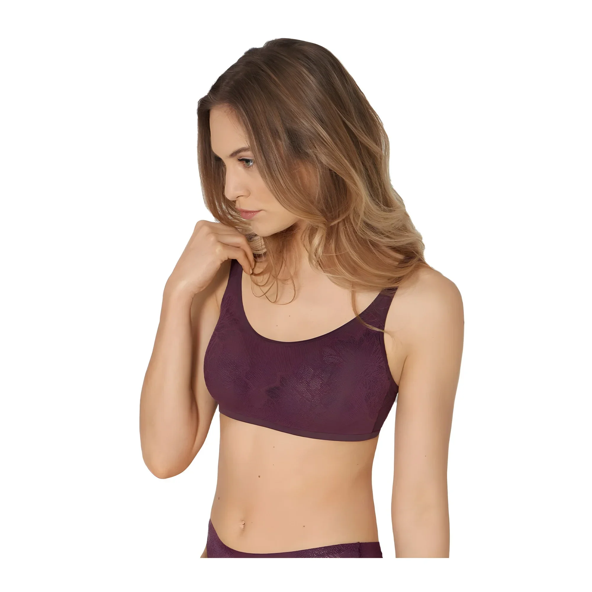 Predná časť z mäkkého materiálu potiahnutého 4D strečovou čipkou pre dokonalé prispôsobenie poprsie