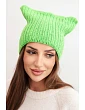 Dámska zimná čiapka s vlnou v mačacom štýle z pruhovanej pleteniny K419 zelená
