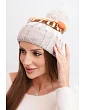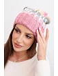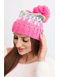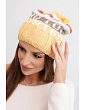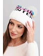 Dámska zimná čiapka s vlnou a nápisom s veľkou bambulou K422 biela