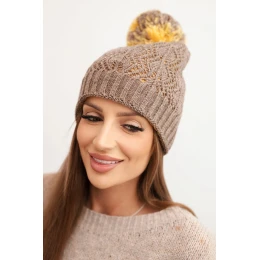 Dámská zimní čepice s příměsí vlny je ideální volbou pro ženy, které si cení jak stylu, tak funkčnosti. Model přitahuje pozornost originálním pletením s dekorativním vzorem a velkým, dvoubarevným pomponem, který jí dodává veselý, zimní charakter. Kontrastní akcent na zakončení čepice podtrhuje její nevšední design.