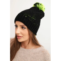 Dámská zimní čepice s příměsí vlny je ideální volbou pro ženy, které si cení jak stylu, tak funkčnosti. Model přitahuje pozornost originálním pletením s dekorativním vzorem a velkým, dvoubarevným pomponem, který jí dodává veselý, zimní charakter. Kontrastní akcent na zakončení čepice podtrhuje její nevšední design.