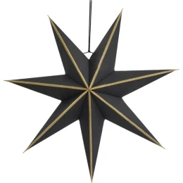 Rozhodnite sa pre dekoratívnu závesnú hviezdu MICA v čiernej farbe - s pôsobivým priemerom 75 cm a geometrickým tvarom so 7 ramenami. Je vyrobená z papiera s certifikátom FSC a je nielen štýlová, ale aj ekologická. Vďaka skladaciemu dizajnu sa ľahko skladuje a opätovne používa.