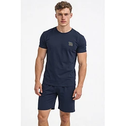 Tričko s krátkymi rukávmi je na úrovni hrudníka zdobené jemným nápisom, ktorý mu dodáva moderný, mladistvý charakter. Súčasťou súpravy sú krátke, voľné šortky, ktoré zaručujú voľnosť pohybu a pohodlie pri spánku a odpočinku.
