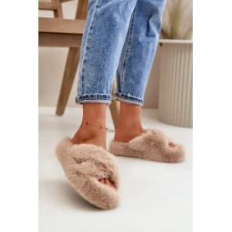 Dámske papuče s hrubou podrážkou z umelej kožušiny Beige Lavitera