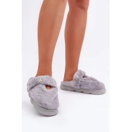 Futrzane Kapcie Z Małą Broszką Szare Primaria