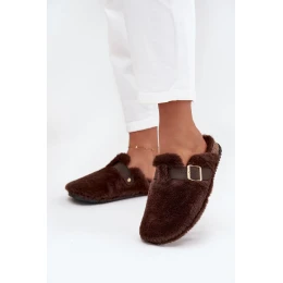 Futrzane Klapki Damskie Na Platformie Z Paskiem I Klamrą Brązowe Noraline