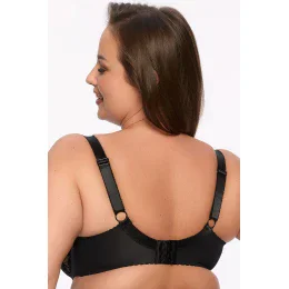 Biustonosz marki Gaia. Model 1134M Keto Maxi. Posiada druty, które podpierają piersi odpowiednio je kształtując. Fiszbiny pionowe osadzone na bokach. Produkt posiada regulowane ramiączka bez możliwości ich odpięcia. Haczyki do ramiączek metalowe. Biustonosz zapinany na haftki. Miejsce zapięcia: tył. Trzy rzędy haftek pionowych. Trzy stopnie haftek poziomych. Produkt został wykonany z 57% poliamid, 18% bawełna, 10% elastan, 10% poliester, 5% poliuretan. Produkt damski.