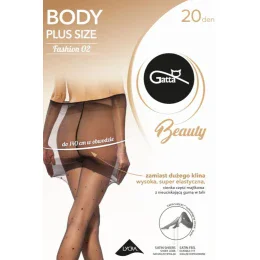 Gatta pančuchové nohavice, Body Plus Size 02, vyrobené z 83% polyamidu, 17% elastanu, označené nohavičky, 20 DEN, dámsky výrobok, s označenými prstami.