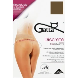 Pančuchové nohavice Gatta, model Discrete 01, 84% polyamid, 16% elastan, bez švov, neviditeľné pod oblečením, bez označenia vrchnej časti, hrúbka 15 DEN, dámsky výrobok, bez označenia nohavičiek.