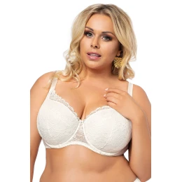 Podprsenka Gorsenia, model K483 Peony, má drôtiky, ktoré podporujú a tvarujú prsia. Zvislé kostice na bokoch. Výrobok má nastaviteľné ramienka bez možnosti odopnutia. Zapínanie na háčiky a očká. Miesto zapínania: na chrbte. 2 rady zvislých háčikov. 3 vrstvy vodorovných háčikov. Výrobok je vyrobený z 90 % z polyamidu, 7 % z elastanu, 3 % z polyesteru. Vlastnosti výrobku: čipkovaná dámska podprsenka s plným košíčkom na leto.