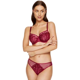 Biustonosz marki Gorteks. Model Angel/B2. Posiada druty, które podpierają piersi odpowiednio je kształtując. Fiszbiny pionowe osadzone na bokach. Produkt posiada regulowane ramiączka bez możliwości ich odpięcia. Haczyki do ramiączek metalowe. Biustonosz zapinany na haftki. Miejsce zapięcia: tył. Produkt został wykonany z 70% poliamid, 25% poliester, 5% elastan. Produkt damski.