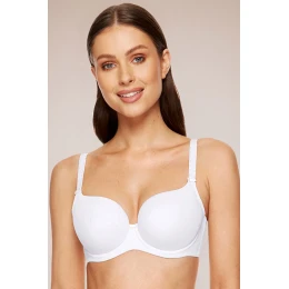 Podprsenka značky Gorteks, model Anna/B4, s drôtmi, ktoré podporujú a tvarujú prsia, vertikálne kostice na bokoch, nastaviteľné ramienka s kovovými háčikmi, zapínanie na háčik a očko, zadná časť, vyrobená z 65 % polyamidu, 20 % polyesteru, 10 % bavlny, 5 % elastanu, vhodná pre ženy.