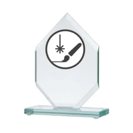 Sklenená trofej gravírovaná + naplnená farbou , V - 18 cm