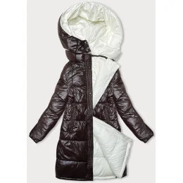 Hnedo-ružová hrubá obojstranná dámska zimná bunda (V768g)
