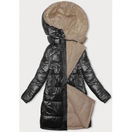 Čierno-béžová hrubšia obojstranná dámska zimná bunda (V768g)
