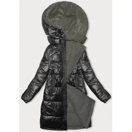 Čierno-haki hrubšia obojstranná dámska zimná bunda (V768g)