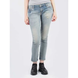 Dámske džínsové nohavice Guess s nízkym regular strihom a zúženými nohavicami so zapínaním na zips a gombík. Originálna kovová nášivka s logom Guess na zadnom páse.