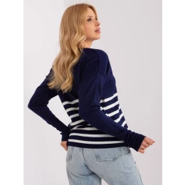 Dámsky oversize sveter v tmavomodrej farbe s výstrihom do V.