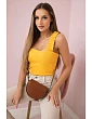 Predstavujeme vám módnu blúzku. Blúzka bez ramienok s volánikmi. Priliehavá blúzka z rebrovanej tkaniny. Blúzka je vyrobená z vysoko kvalitného materiálu. Veľkosť je univerzálna a vyhovuje dámam, ktoré nosia veľkosť S, M alebo L.
