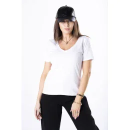 Návrh ze základní řady - pohodlná bavlněná halenka ušitá z vysoce kvalitní bavlny. Ležérní, elegantní a ideální pro všechny styly. Díky velmi ženskému výstřihu do V vypadá skvěle. Složení: 95% bavlna, 5% elastan.