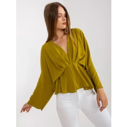 Olivová blúzka v jednej veľkosti s výstrihom do V.