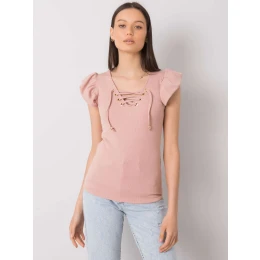 Špinavě růžová halenka se šněrovacím výstřihem.