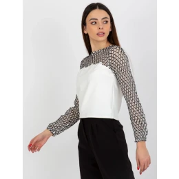 Ecru-čierna dámska blúzka s dlhými rukávmi.