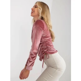 Špinavoružová krátka velúrová blúzka s okrúhlym výstrihom.