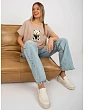 Béžová rebrovaná blúzka oversize s plyšovým .