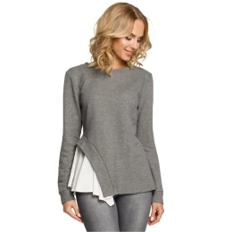 Hľadáte jedinečnú blúzku? Táto zaujímavo strihaná blúzka s asymetricky strihanými bokmi a vyrobená z kombinácie dvoch materiálov, mäkkého rebrovaného úpletu a vzdušnej tkaniny, určite splní vaše očakávania. Blúzka s dlhými rukávmi je ideálna na mnohé príležitosti.
