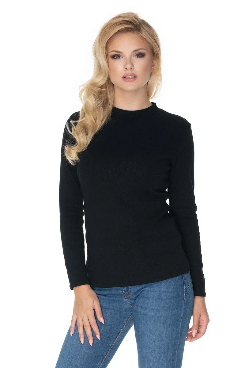 Priliehavá blúzka s dlhými rukávmi. Blúzka so stojačikom. Kvalitná rebrovaná bavlna.