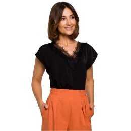 Táto hladká blúzka bez rukávov je základom nielen kancelárskeho outfitu. Vďaka módnemu čipkovému lemovaniu je ideálna ako doplnok k saku alebo svetru a oživí každú štylizáciu.