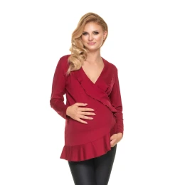 Tehotenská blúzka s volánikmi. Je možné nosiť aj po tehotenstve. S viazaním pre ľahké nastavenie veľkosti.