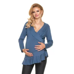 Tehotenská blúzka s volánikmi. Je možné nosiť aj po tehotenstve. S viazaním pre ľahké nastavenie veľkosti.