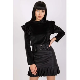 Velúrová blúzka rovného strihu s dlhými rukávmi a stojačikom. Ozdobné volániky na ramenách. elastan 5%Polyester 95%