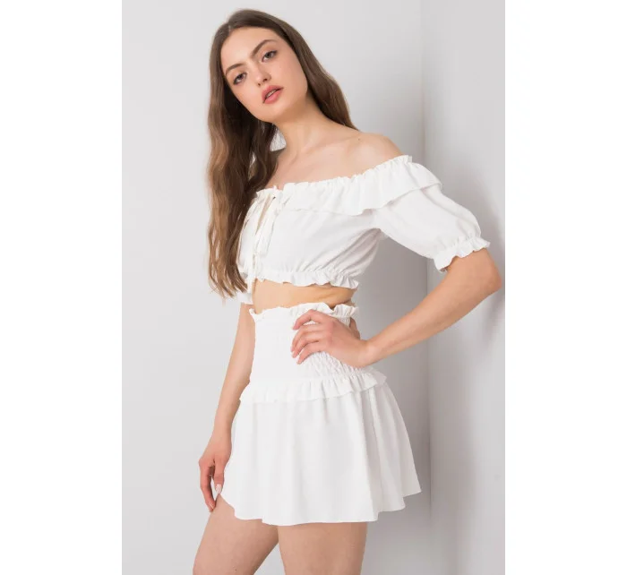 Krátka blúzka s výstrihom v španielskom štýle a krátkymi rukávmi. Zaväzovanie vpredu.