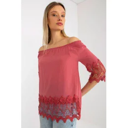 Blúzka s 3/4 rukávmi a výstrihom v španielskom štýle. Rukávy a spodný lem blúzky so zaujímavým zakončením.