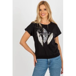 Blúzka rovného strihu s krátkymi rukávmi a okrúhlym výstrihom. Ozdobná potlač na prednej strane.