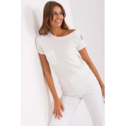 Blúzka z rebrovaného materiálu s krátkymi rukávmi a asymetrickým výstrihom. Na prednej strane našité vrecko.
