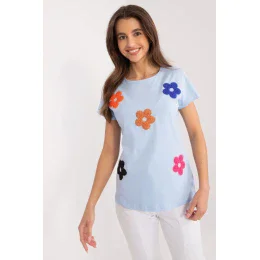 Táto blúzka je ideálnou voľbou pre tých, ktorí hľadajú ležérny, ale roztomilý kúsok do svojho šatníka. Je vyrobená z kvalitnej bavlny a zaručuje pohodlné nosenie počas celého dňa. Jeho dizajn sa spolieha na jednoduchosť, ale je zdobený jemným, ale výrazným spôsobom. Na prednej časti sú očarujúce kvety, ktorých krásu podčiarkujú drobné zirkóny. Toto jemné zdobenie dodáva blúzke osobitý šarm a robí ju vhodnou na mnohé príležitosti. Blúzka má štandardnú dĺžku a krátke rukávy, takže je ideálna na letné dni. Výstrih je okrúhly, vďaka čomu je univerzálny a vhodný k rôznym outfitom. Je to ideálna voľba pre tých, ktorí oceňujú jednoduchosť s nádychom elegancie, ideálna na každodenné nosenie. Dá sa ľahko kombinovať s rôznymi nohavicami alebo sukňami a vytvoriť tak štýlové a pohodlné oblečenie na každodenné nosenie.