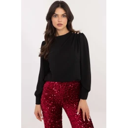 Elegantná blúzka s jemným ženským štýlom, ideálna na slávnostné príležitosti a do práce. Je vyrobená z hladkej tkaniny zo zmesi polyesteru a elastanu, ktorá poskytuje pohodlie a jemne sa prispôsobí postave. Blúzka má okrúhly výstrih a je vybavená efektnými dlhými rukávmi, ktoré jej dodávajú eleganciu. Priliehavé rukávy s ozdobnými záhybmi na ramenách a jemné gombíky dodávajú celku osobitý charakter. Štandardná dĺžka umožňuje blúzku dokonale kombinovať so sukňami aj nohavicami, čím sa vytvorí elegantný outfit.